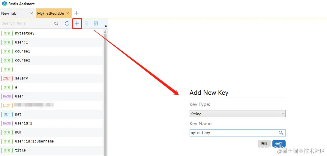 2、新建key,可随时点击左上角工具栏的刷新按钮查看key及其value的变化