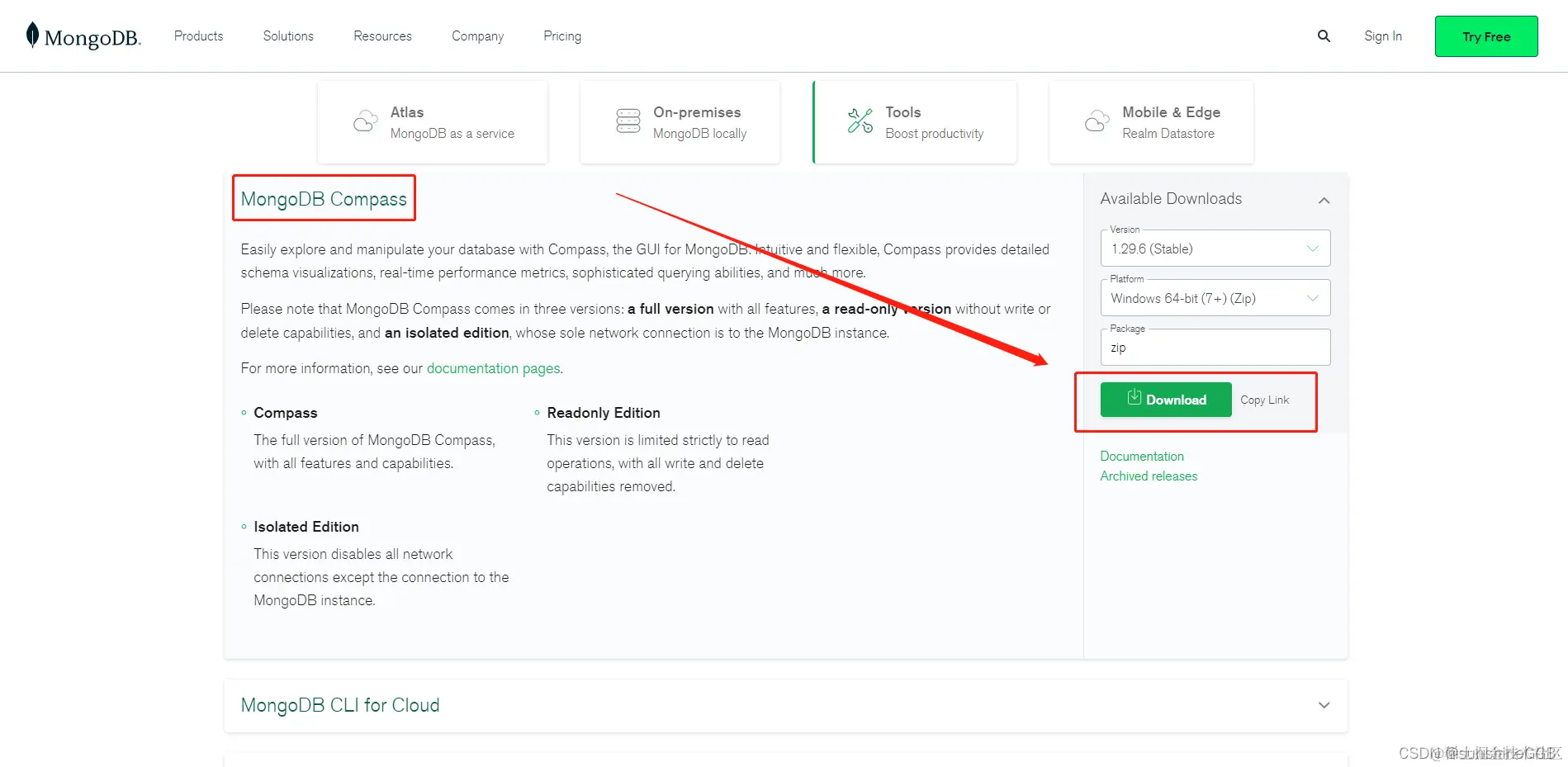 MongoDB Compass 预编译二进制包下载地址:www.mongodb.com/try/downloa…