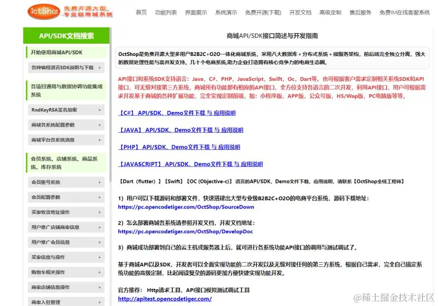 商城所有系统API/SDK接口简述与开发指南,支持多编程语言: pc.opencodetiger.com/OctShop/Api…