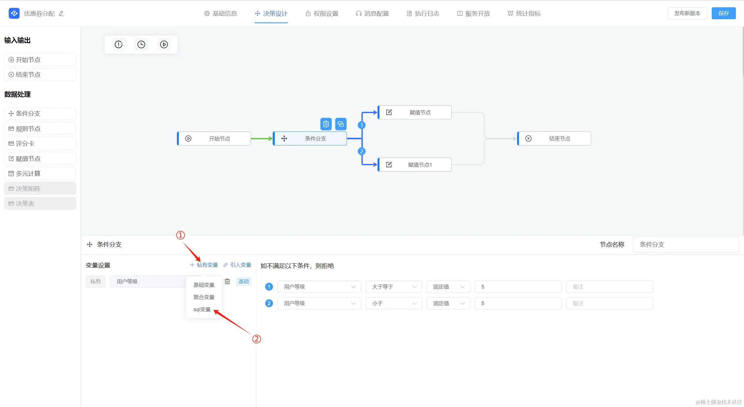 在决策中,创建私有的SQL变量,如下图所示:
