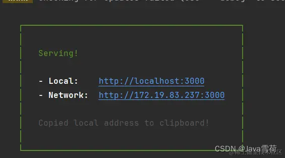 打包后会多出一个dist目录,点击右键打开于终端,在终端中执行serve命令,判断打包好的项目是否能够运行成功。(注意一定要切换至dist目录下执行serve命令,不然点击链接显示不出来项目)