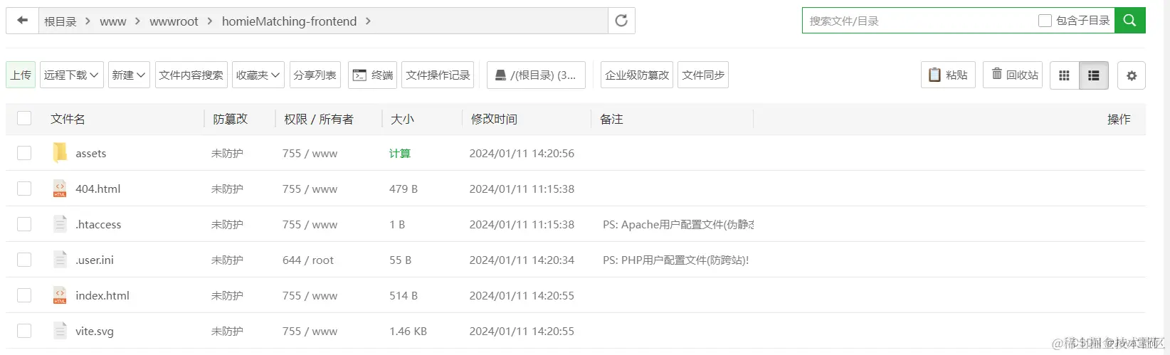 前端打包后的项目拖到宝塔