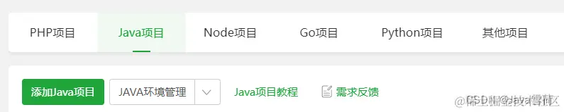 随后点击侧边栏的网站,再点击Java项目,再点击添加Java项目。