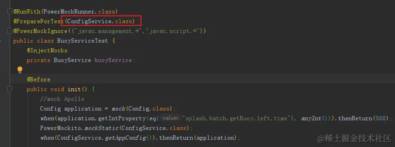 方式一:直接mock掉Apollo的静态方法,使其使用本地配置方法