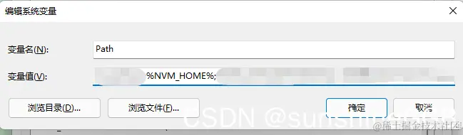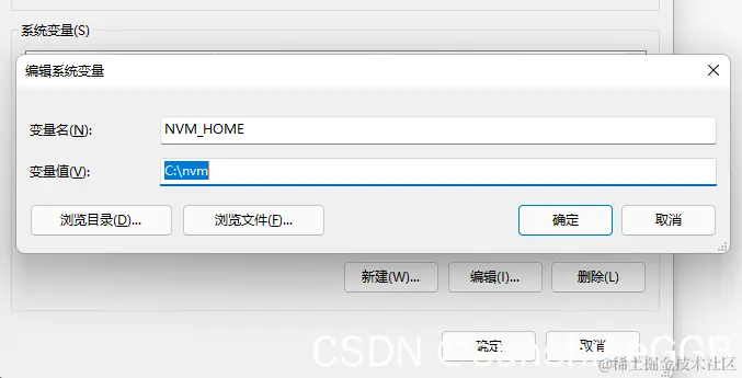 ① 新建 NVM_HOME 的系统变量,变量值为NVM的安装路径