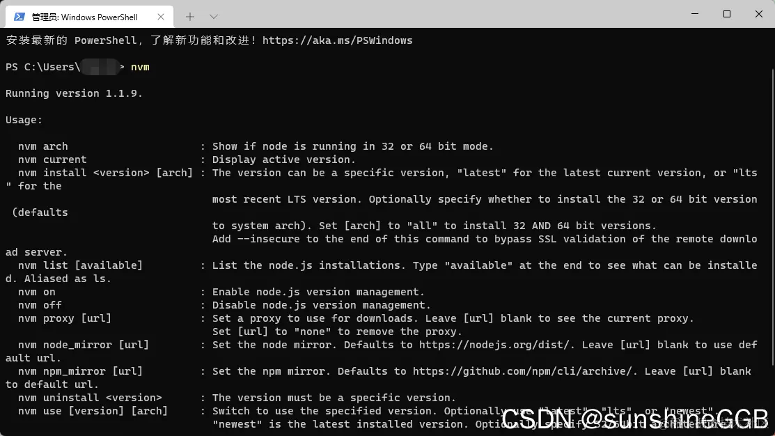 ③ nvm install xxx:安装node,,xxx指具体版本号 如nvm install 12.13.1