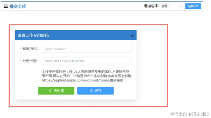 在选择 IPA 文件和设置密码后,我们可以开始进行上传操作。点击上传按钮,等待上传完成。