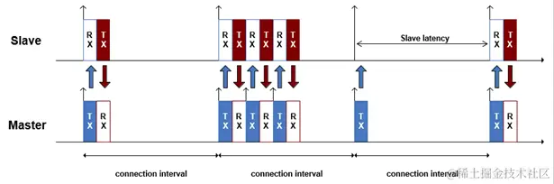 连接成功后,master和slave在每一个connection interval开始的时候,都必须交互一次,即master给slave发一个包,slave再给master发一个包,整个交互过程称为一个connection event.