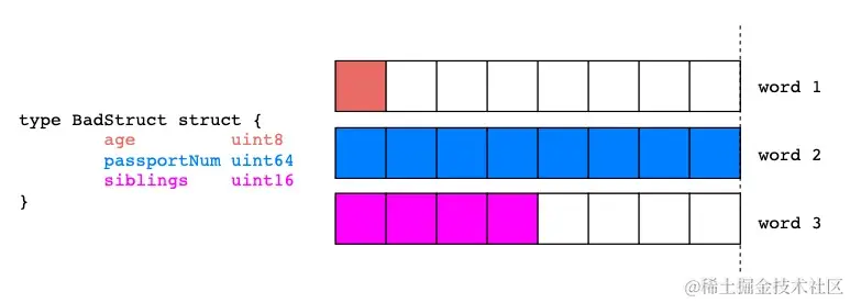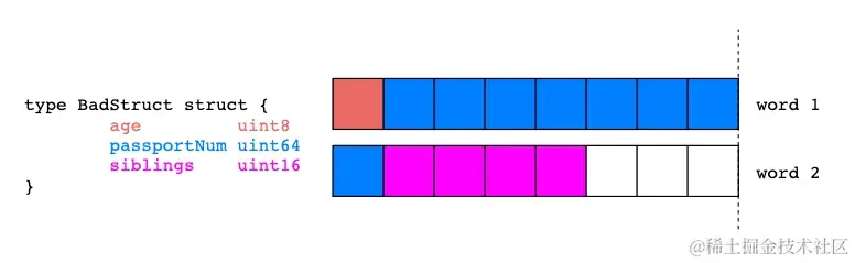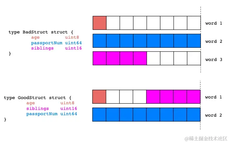 GoodStruct消耗更少的内存,仅仅因为与BadStruct相比,其struct字段顺序更合理。