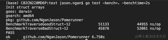 对GoodStruct和BadStruct进行基准测试的方法是循环遍历数组,并将struct字段累加到变量中。