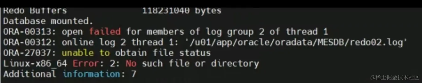 数据库down机,启动数据库报错提示,无法找到在线日志redo02.log