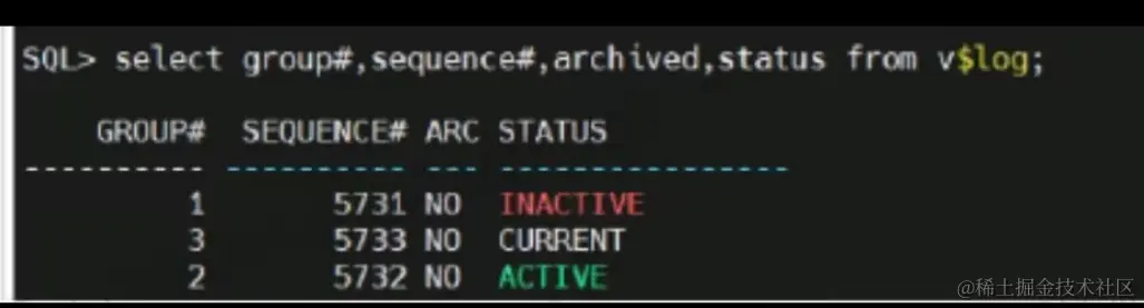 select group#,sequence#,archived,status from v$log;
