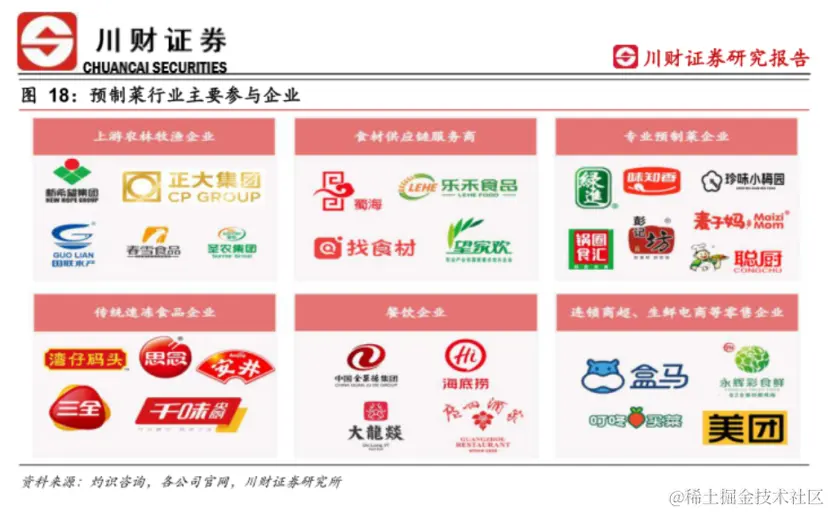 六是,依托线上平台拓展预制菜业务的连锁商超、生鲜电商等,如盒马鲜生、叮咚买菜等。