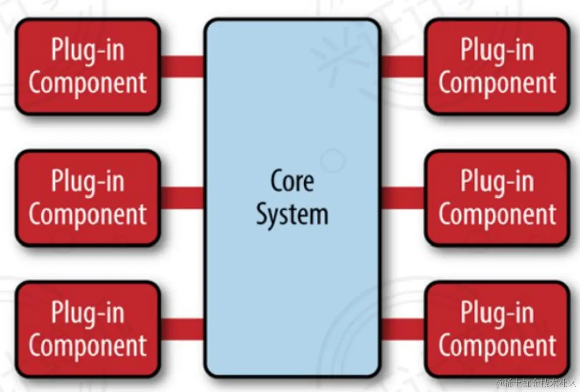 微内核架构包含两类组件:核心系统和插件模块。核心系统负责通用功能,不因为业务的变化而变化;插件模块负责实现具体的业务,可以根据业务的变化而改动和扩展。