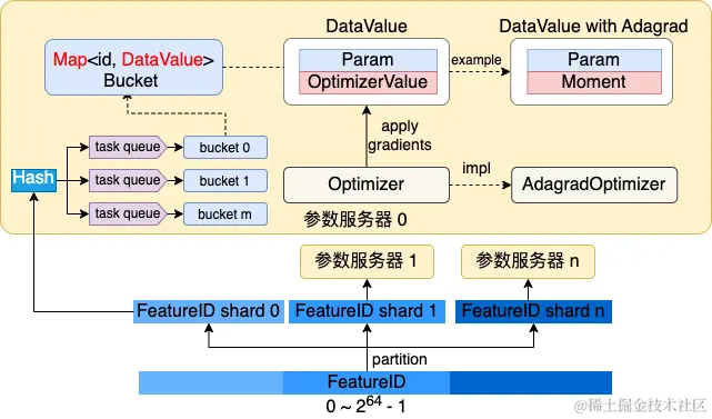 ▪基于Map实现稀疏参数存储,支撑动态Embedding、增量导出等复杂功能。