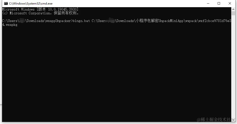 把刚刚wxpack文件夹的 wx开头的xxxxxxx.wxapkg解密文件用bingo.bat 命令运行
