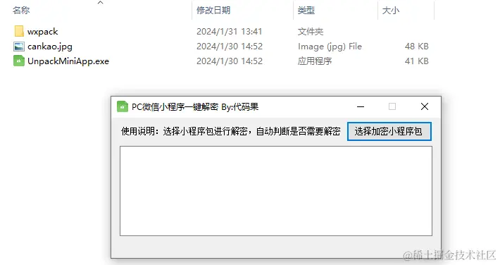 找到刚刚下载《小程序包解密UnpackMiniApp》文件,选择加密小程序。
