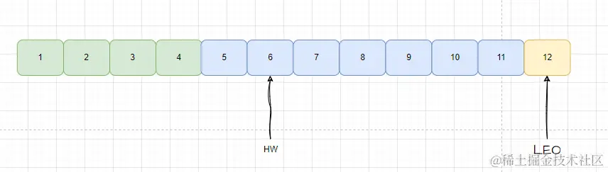 当消费者消费消息时,它可以使用高水位作为参照点,之消费高水位之前的消息,以确保消费的时已经被确认的消息,从而保证数据的可靠性。如下图,只消费offset为6之前的消息。