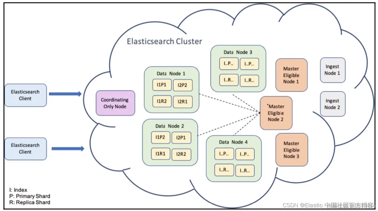 在 Elasticsearch 集群中,主节点负责集群范围内的轻量级操作,例如创建或删除索引、确定将哪些分片分配给新节点以及删除不响应的节点。