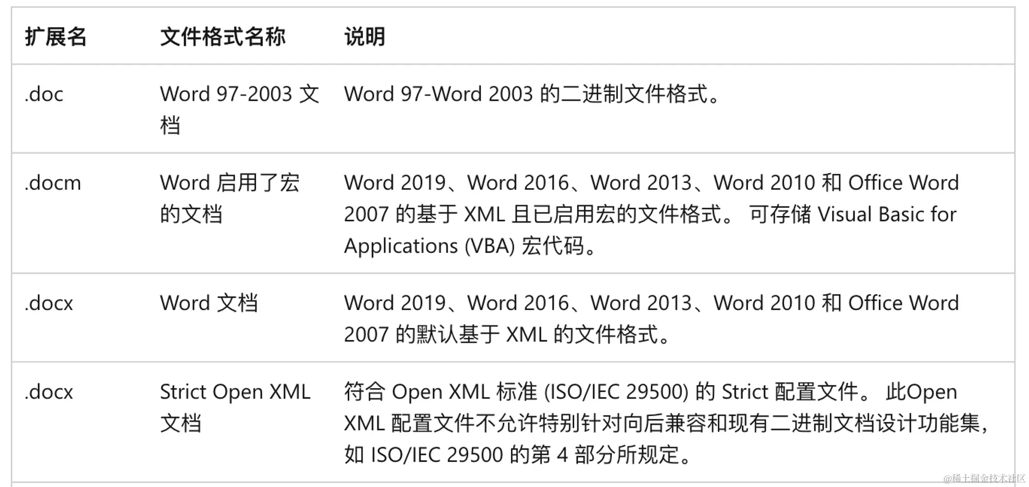 Word支持的文档格式蛮多,想了解的读者移步Word、Excel 和 PowerPoint 的文件格式参考。
