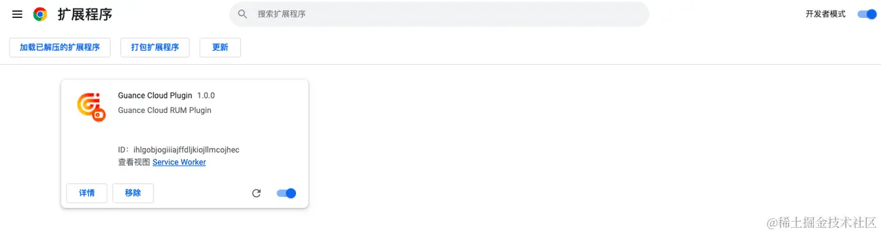 - 解压下载的浏览器插件「guance-rum-plugin.zip」