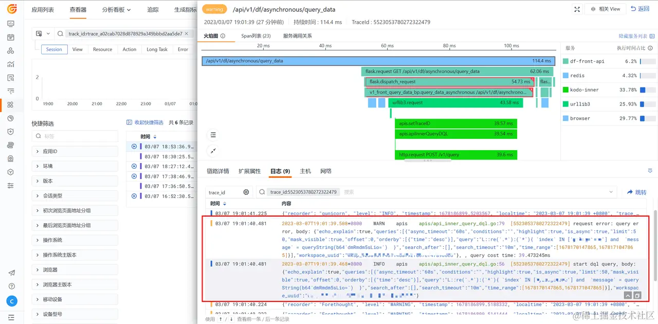 - 根据追踪 ID 和用户提供时间范围,定位到某个用户访问会话。