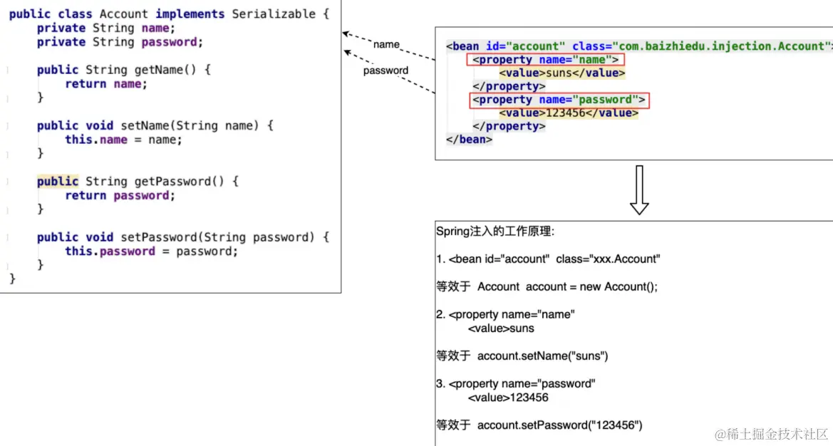 首先需要了解什么是注入?在创建对象的过程中,不仅仅是创建一个对象还需要为对象的属性赋值.这一系列操作在Spring中,是通过Spring工厂以及配置文件,为所创建的对象的成员变量赋值.