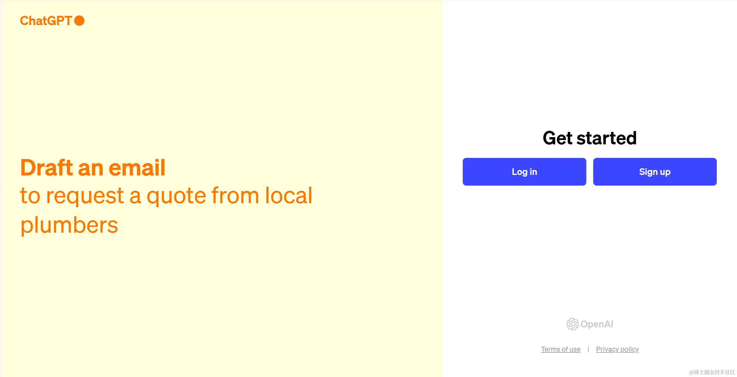 ChatGPT的官方网址是 chat.openai.com,官网如下图: