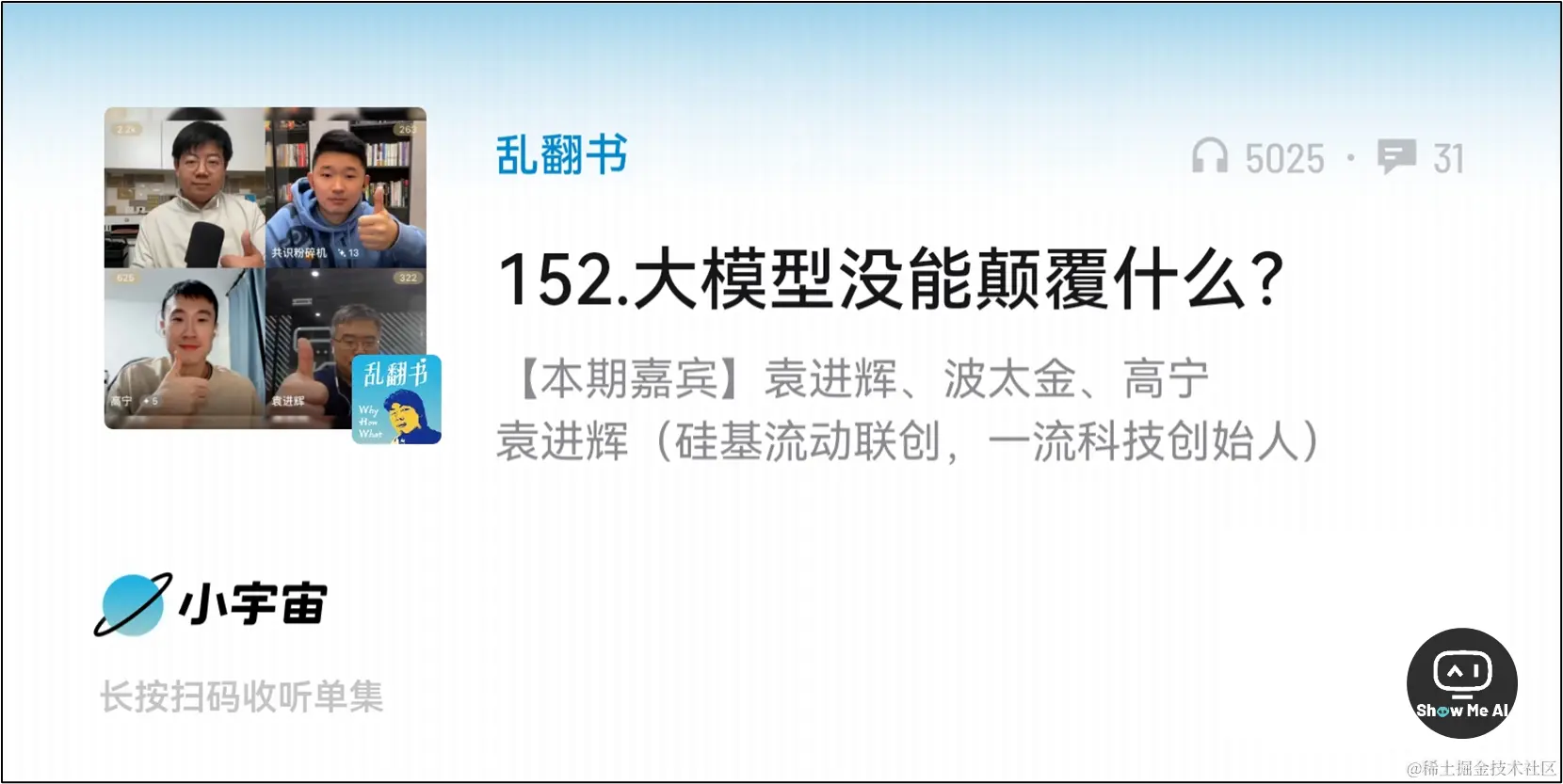 补充一份背景:潘乱主理的「乱翻书」是科技和互联网业内很知名的圆桌对话节目,近期关于 LLM 的几期圆桌讨论都很不错!「乱翻书」公众号也有视频版回放~