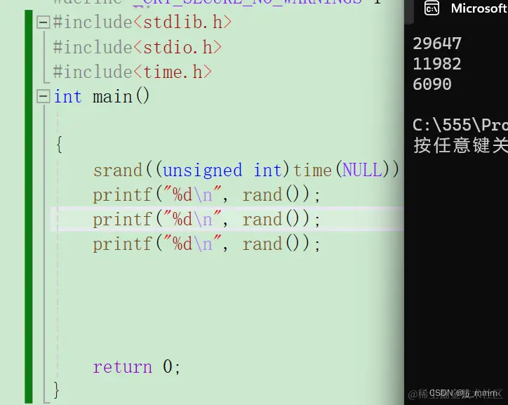 3srand()函数修改种子依靠time函数之前要强制转换成无符号整型。
