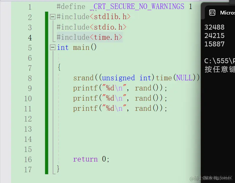 2别忘了包含函数的头文件#include<stdlib.h>,#include<time.h>