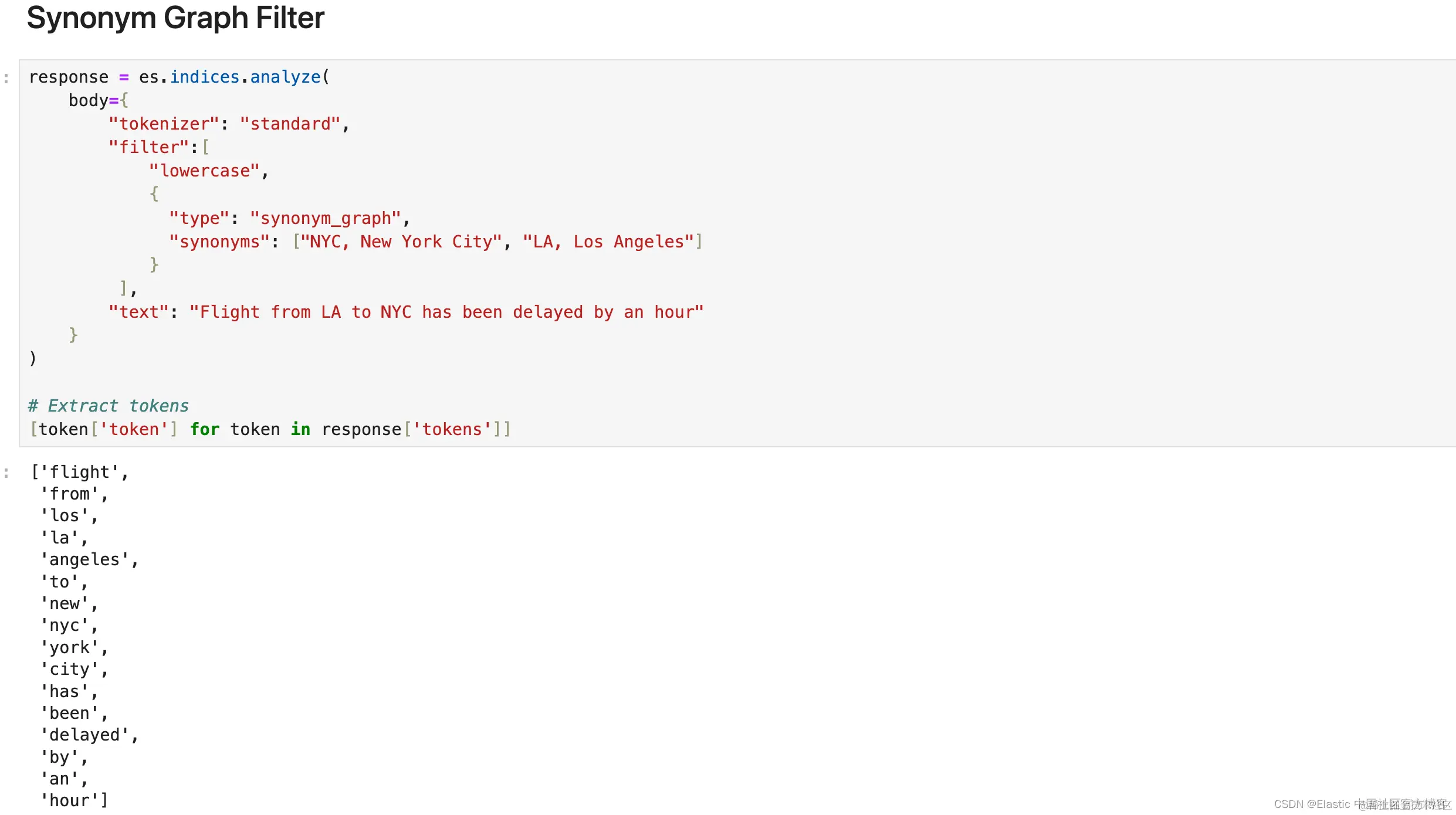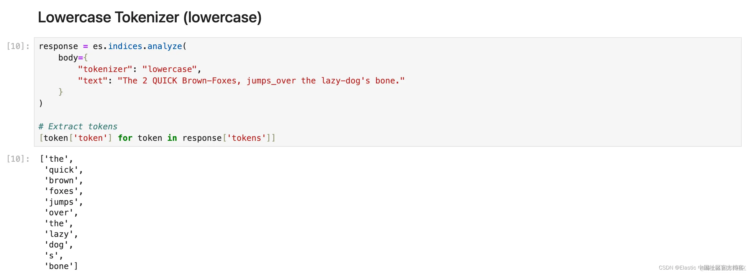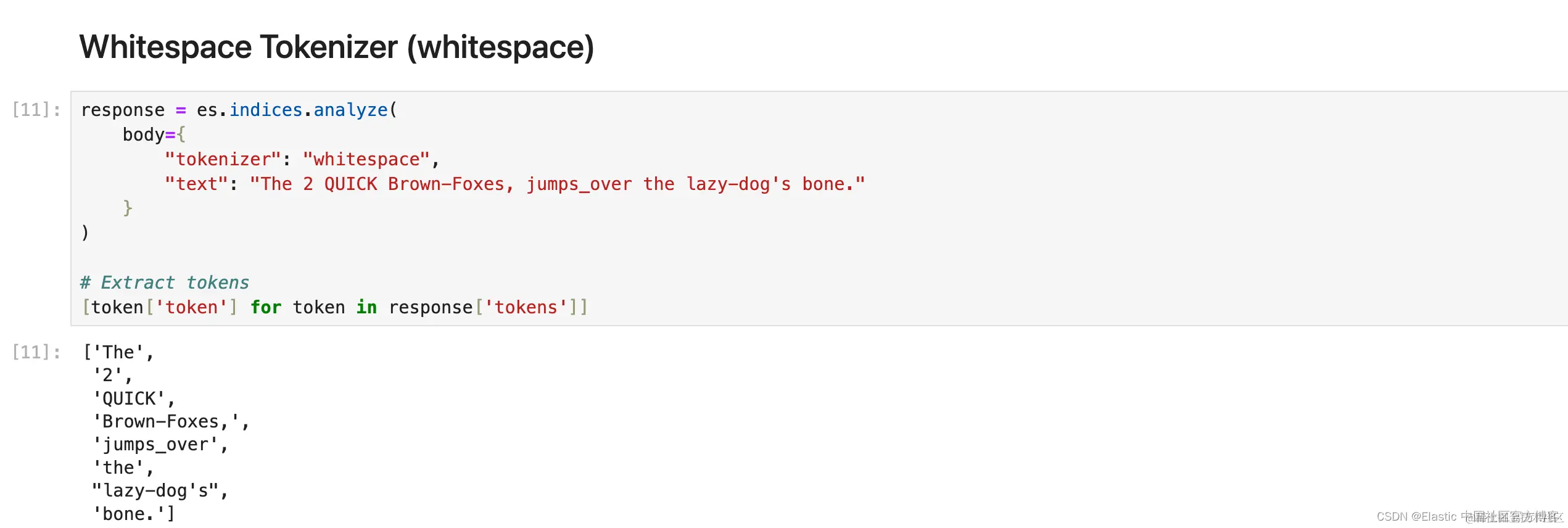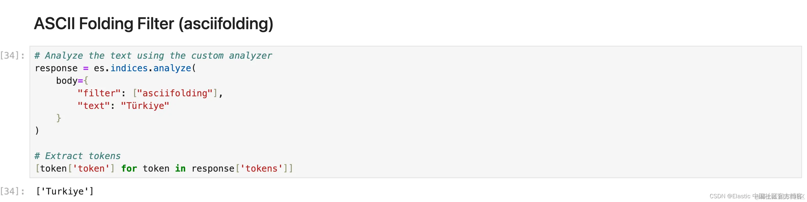 1. response = es.indices.analyze(