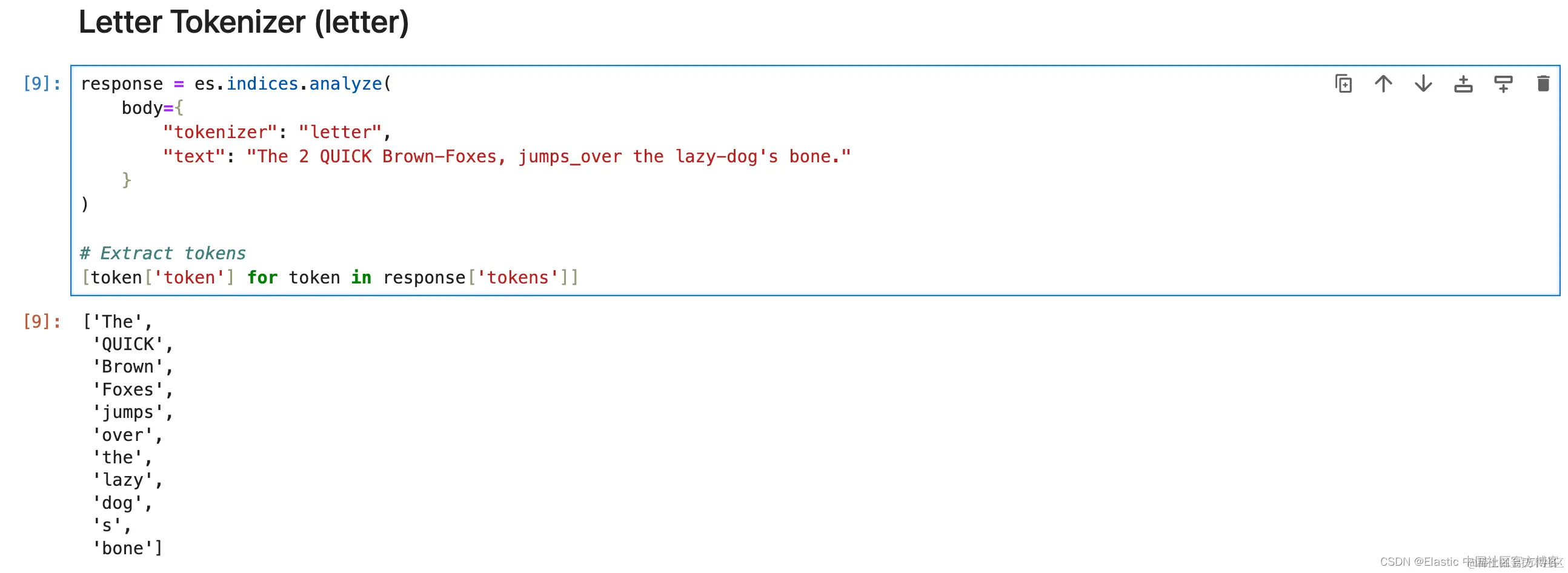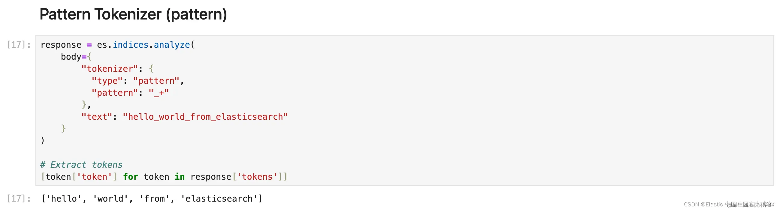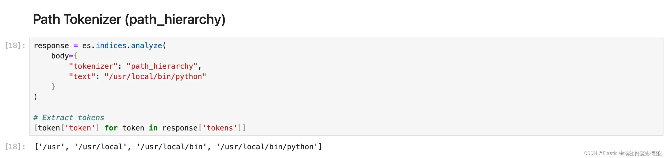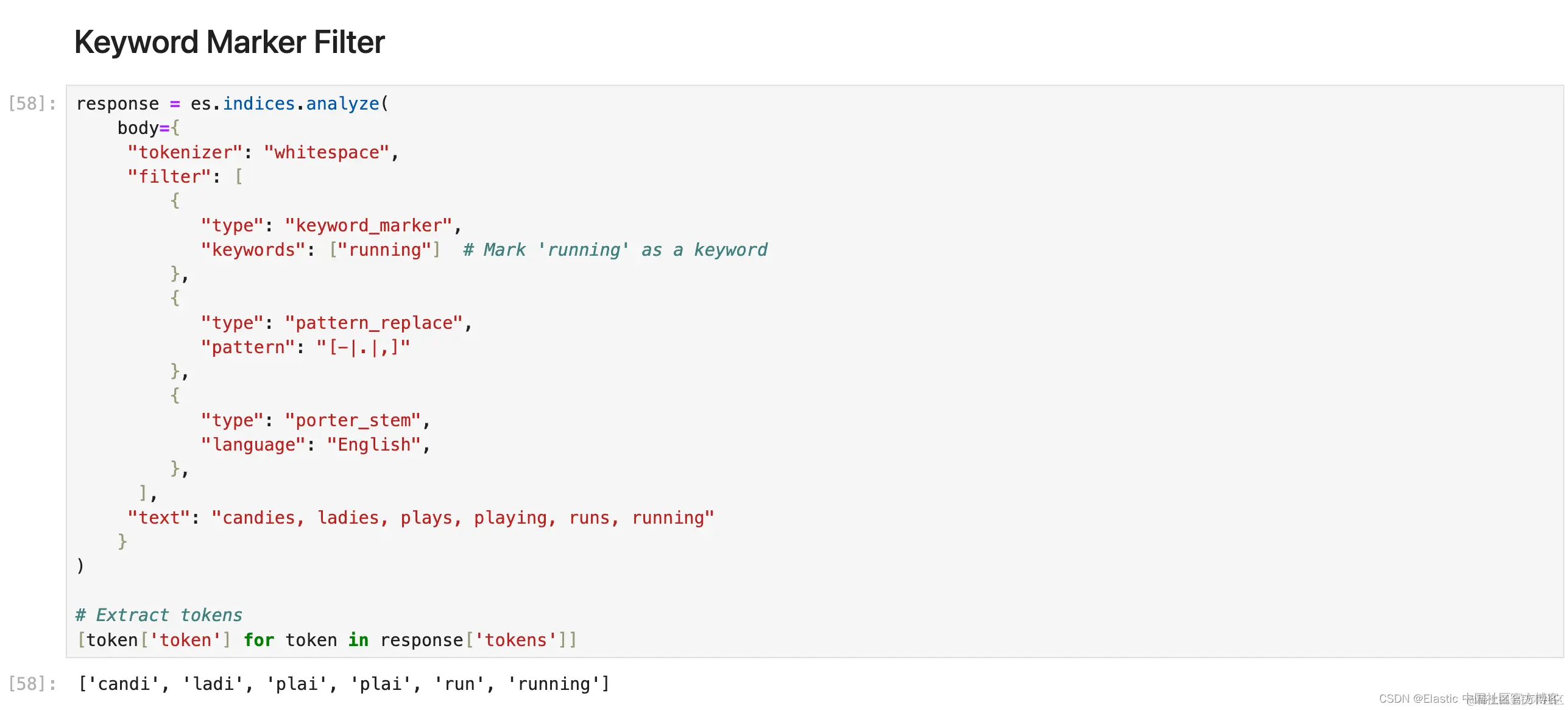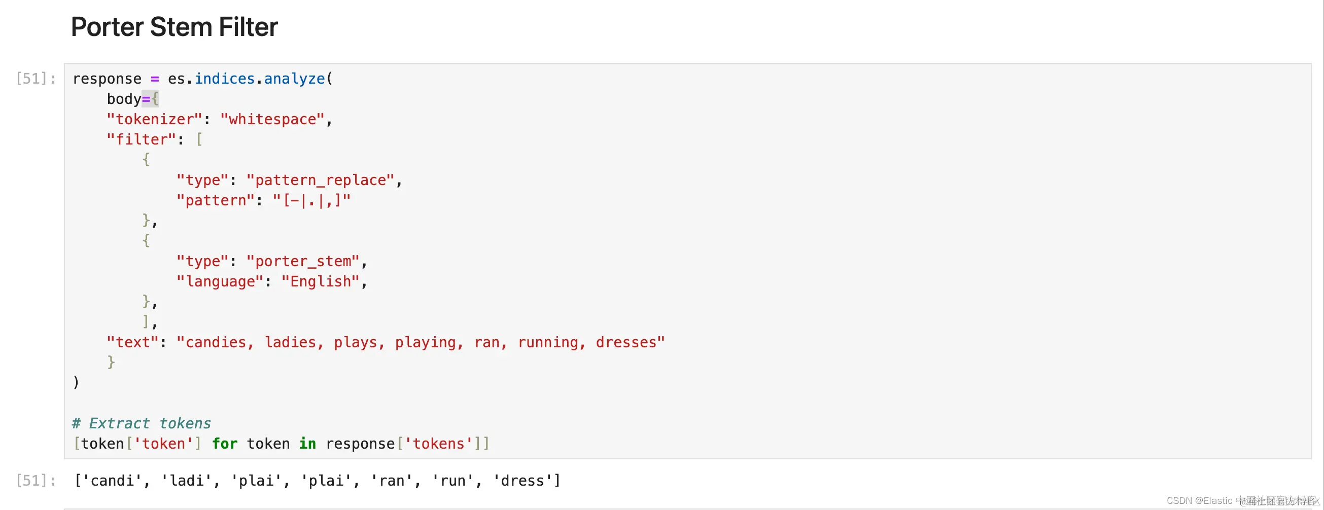 1. response = es.indices.analyze(