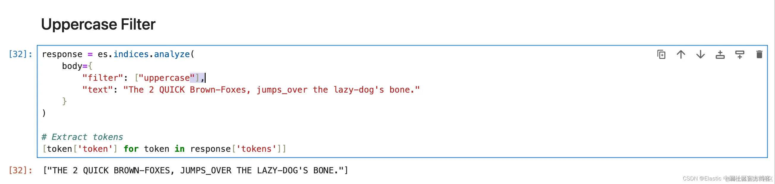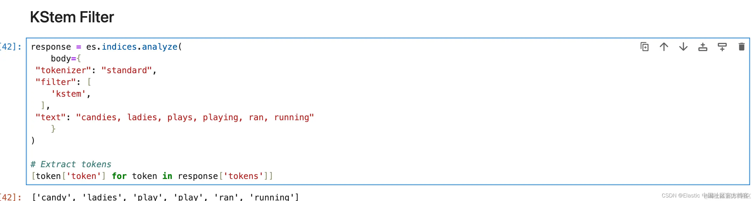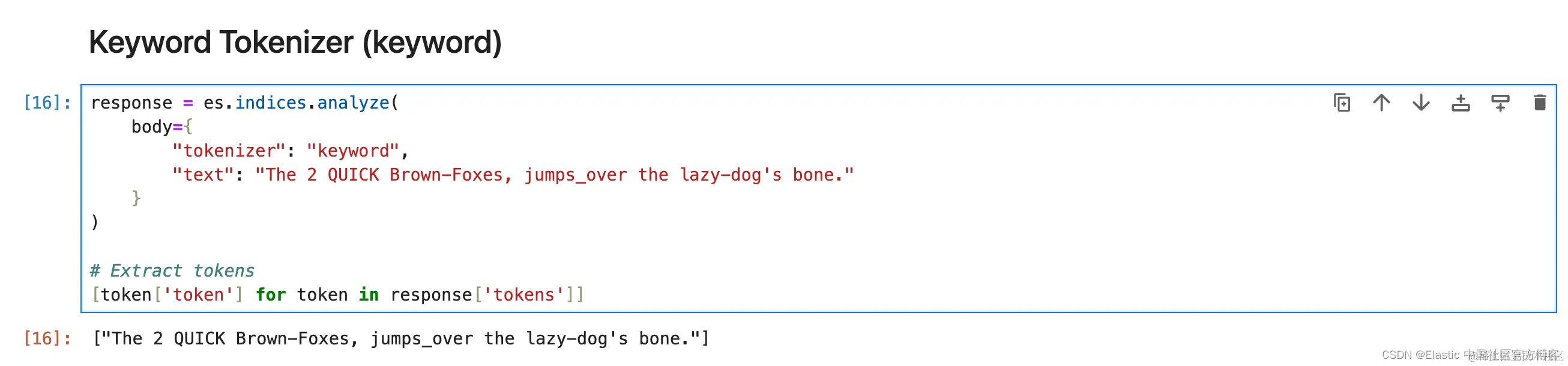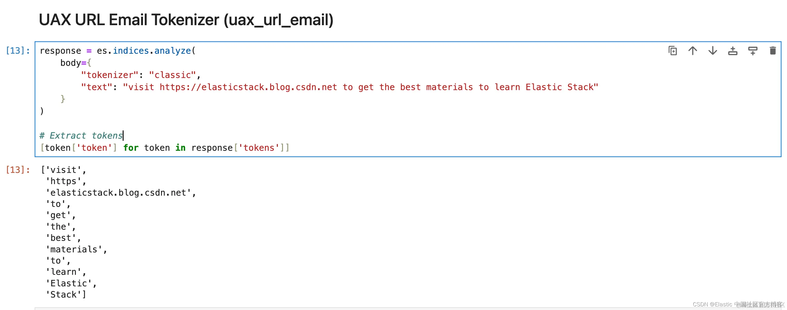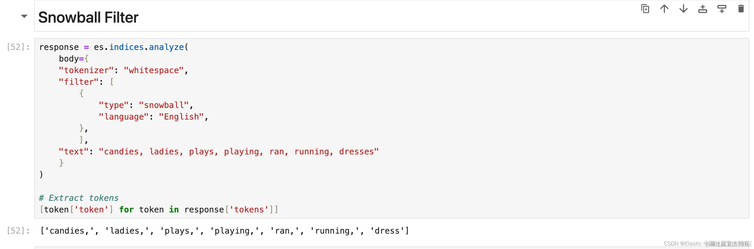 1. response = es.indices.analyze(