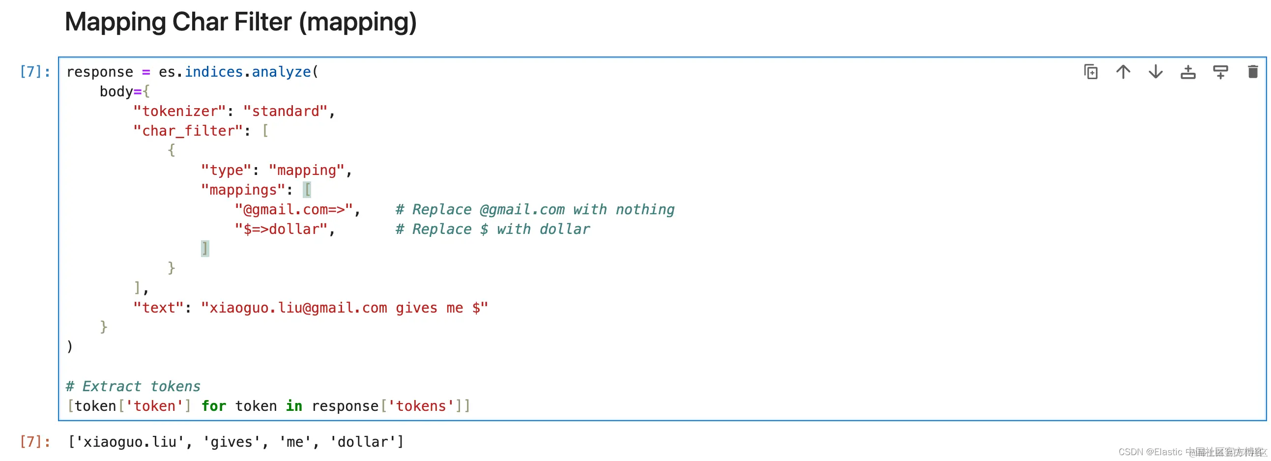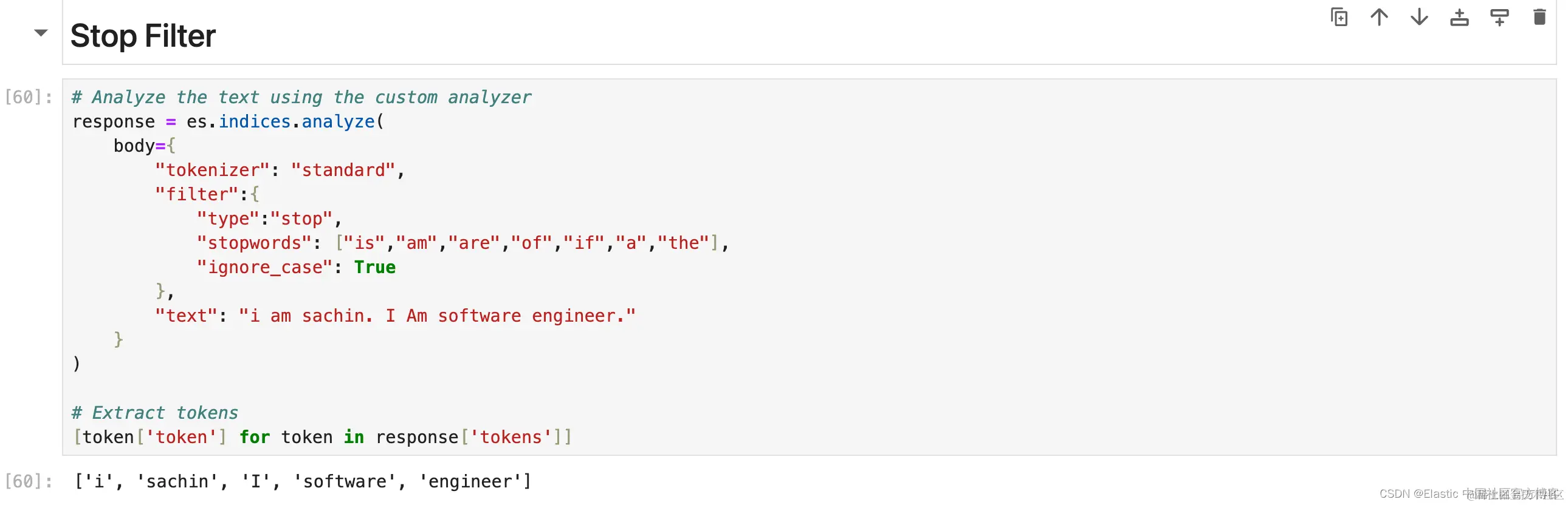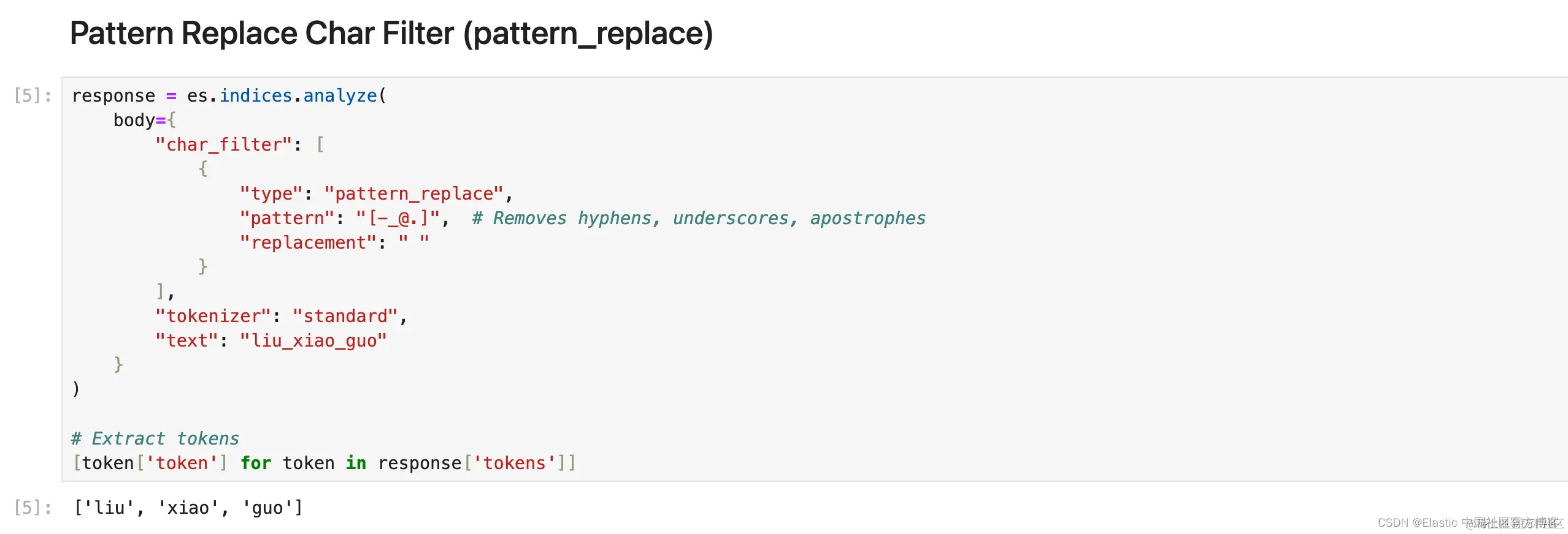 现在需要注意的一件事是顺序,无论你在内部处理时给 Elasticsearch 什么顺序,总是使用相同的顺序 char_filter > tokenizer > token_filter 但 char_filter 或 token filter 块内的顺序会有所不同。