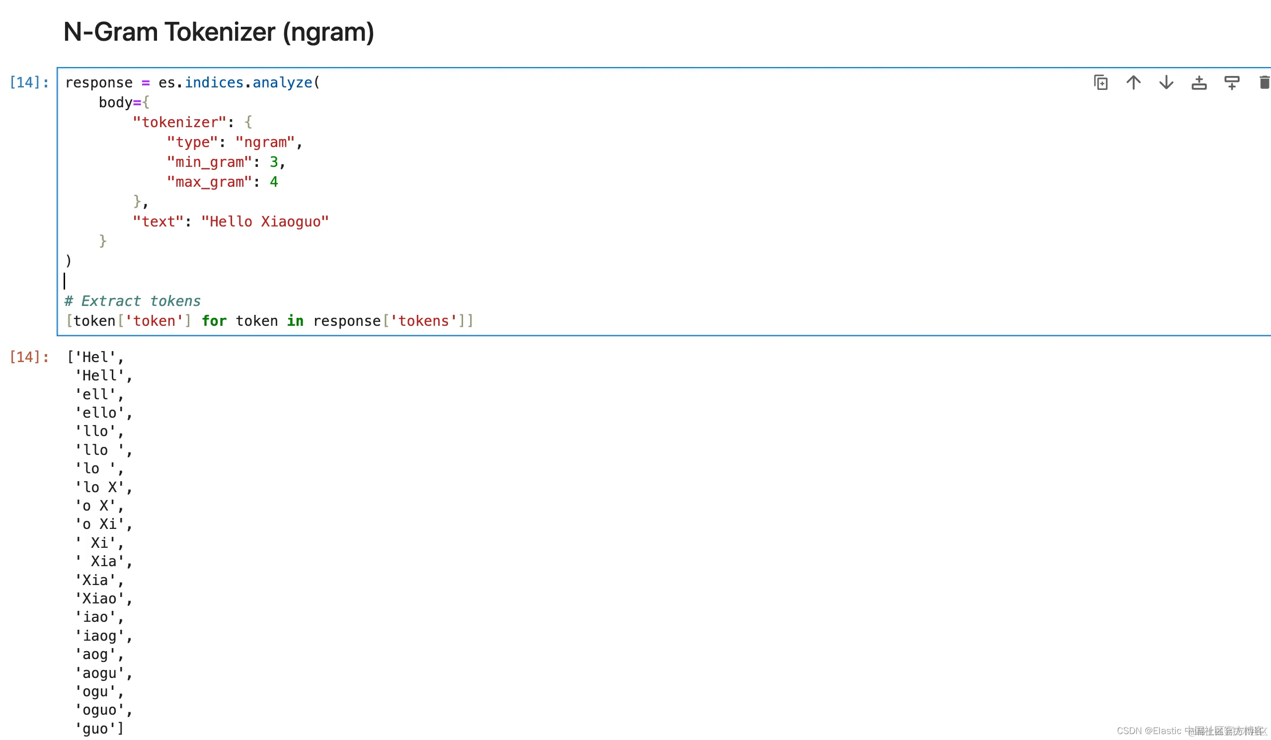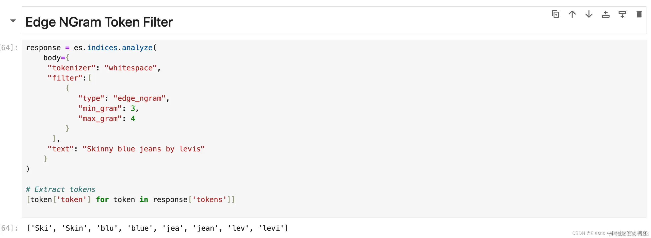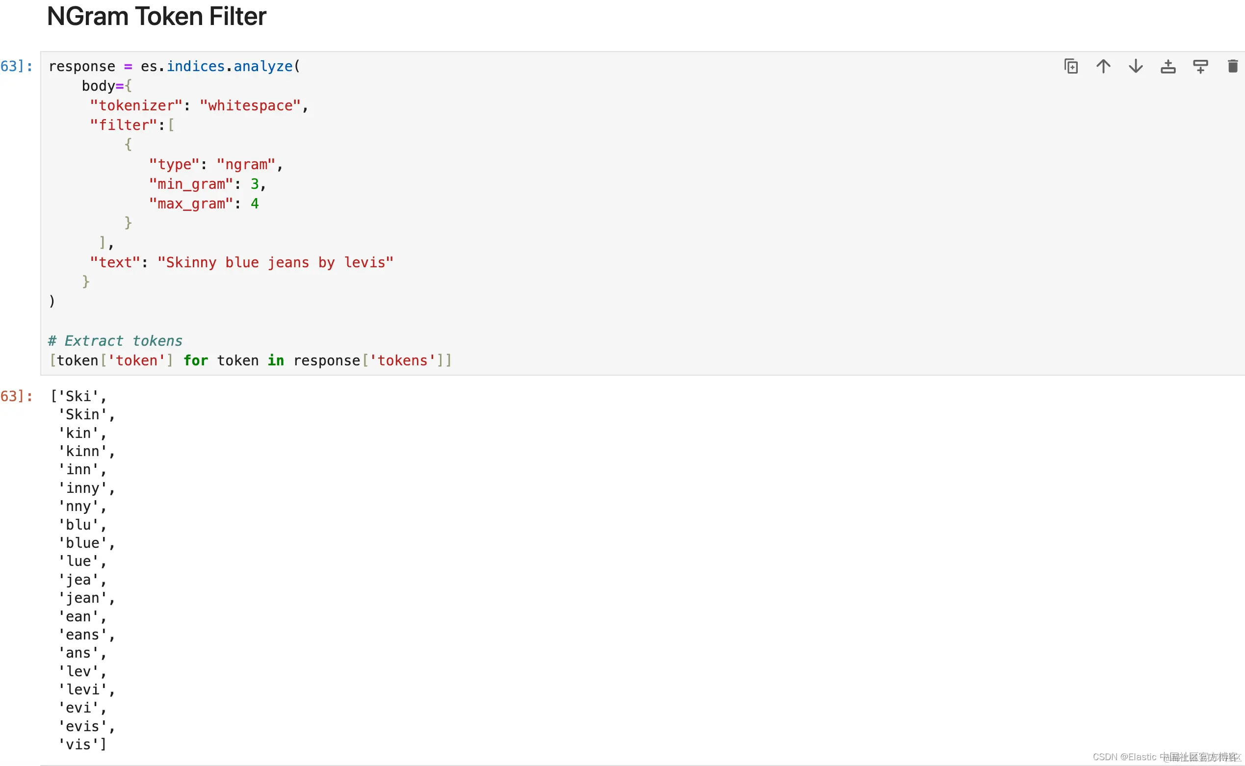 从分词形成指定长度的 ngram。 最适合在键入时自动完成或搜索。 或者用于用户可能会犯错或拼写错误的搜索。