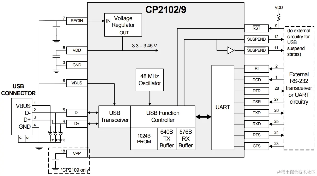 CP210x 是一款常见的高端、高度集成的 USB 至 UART 的桥接控制器,提供完整的即插即用接口解决方案。