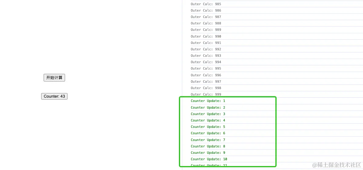 可以看出来,当我们使用空闲时计算时,虽然计算任务一直在持续,但是并没有阻塞 "计时器" 的交互和更新。这会给交互体验,带来很大的改善。
