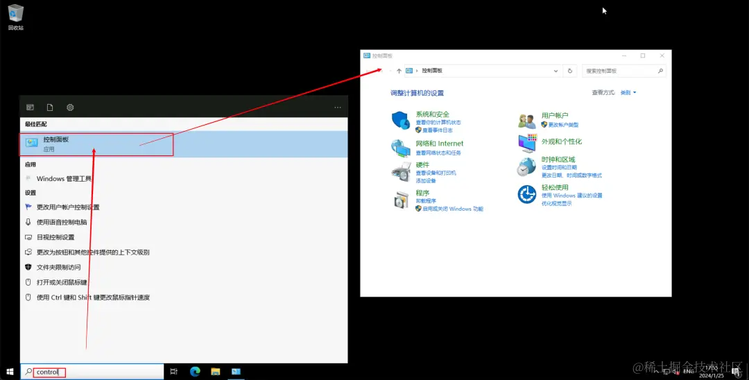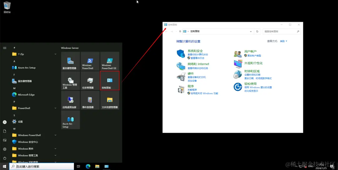 1、打开服务器的控制面板。可以通过开始菜单或在搜索框内运行命令"control"来打开控制面板。
