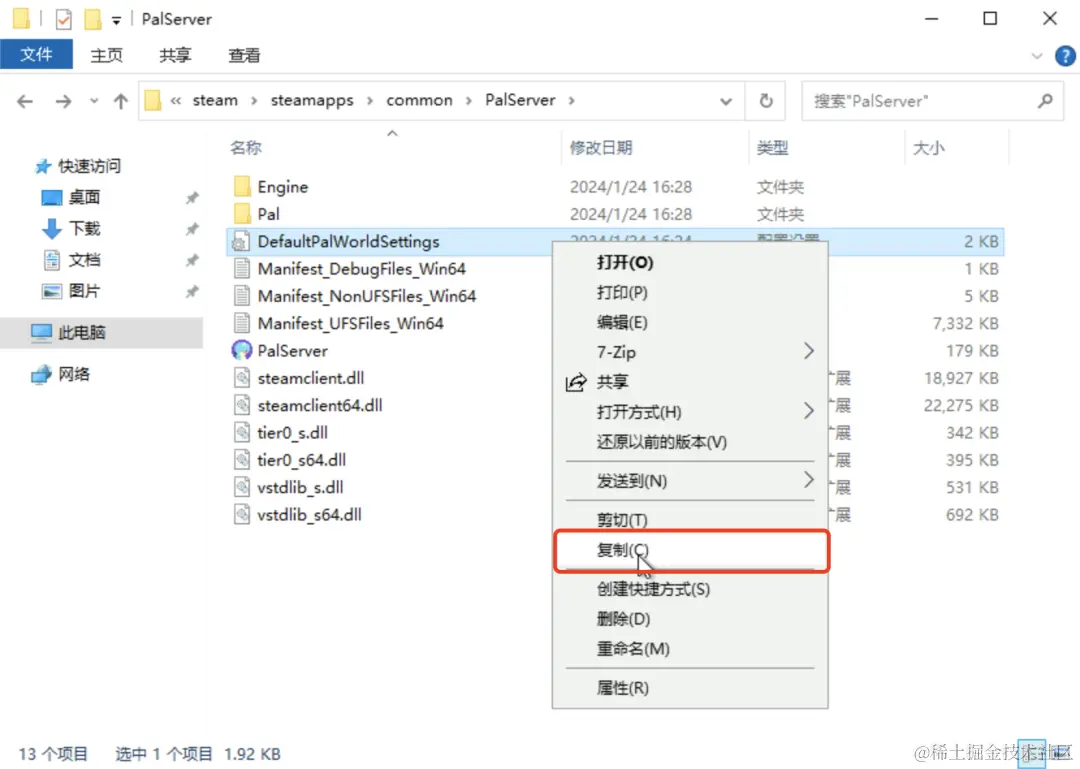 复制幻兽帕鲁默认配置文件