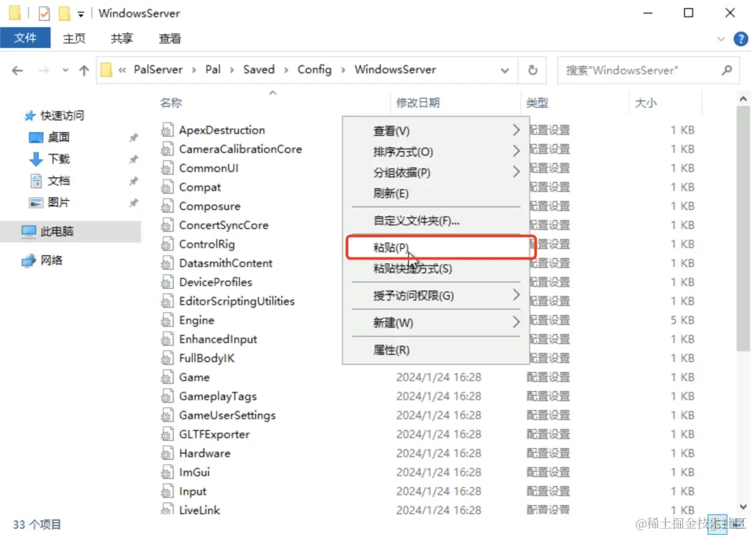 粘贴完成之后,删除原有的PalWorldSettings.ini文件,并将刚刚复制的文件名修改为PalWorldSettings.ini。