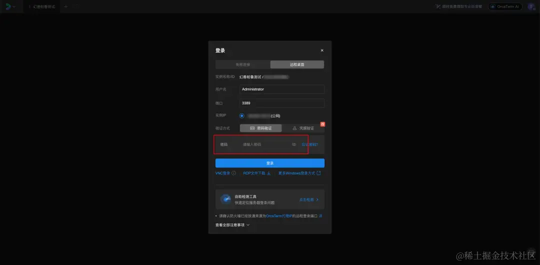 2、选中服务器实例,点击【登录】按钮,并在登录页面输入登录密码即可。