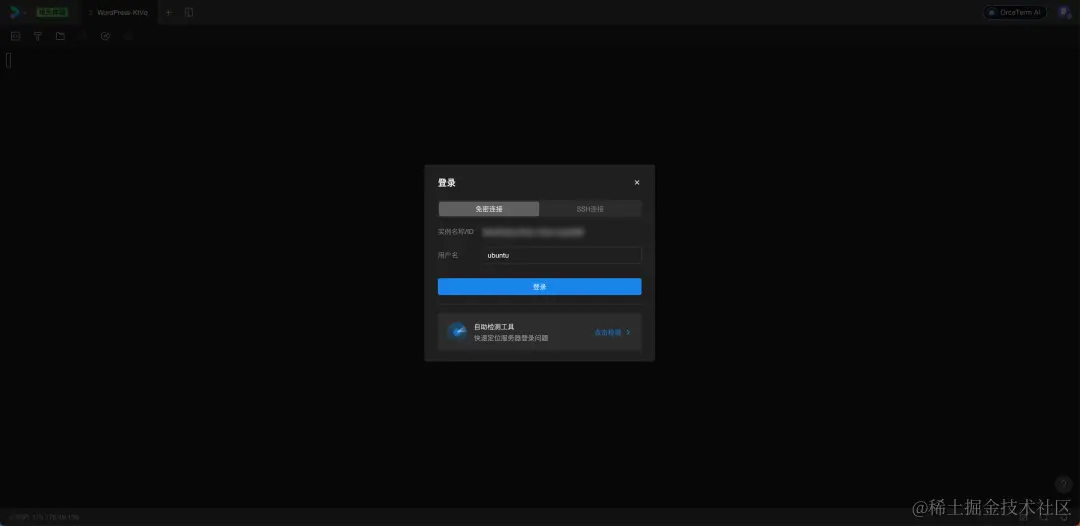 登录腾讯云轻量应用服务器控制台。选中服务器实例,点击登录按钮,推荐使用免密登录,您无需密码即可登录。