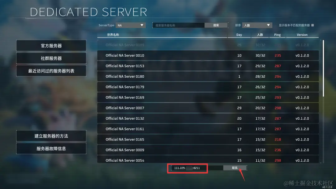 第四步:至此,您已经成功搭建了幻兽帕鲁专属服务器(Dedicated Server),可以让玩家输入您已部署服务器的公网IP地址和端口好(如11.11.11.11:8211),连接服务器成功后即可畅快联机开玩。