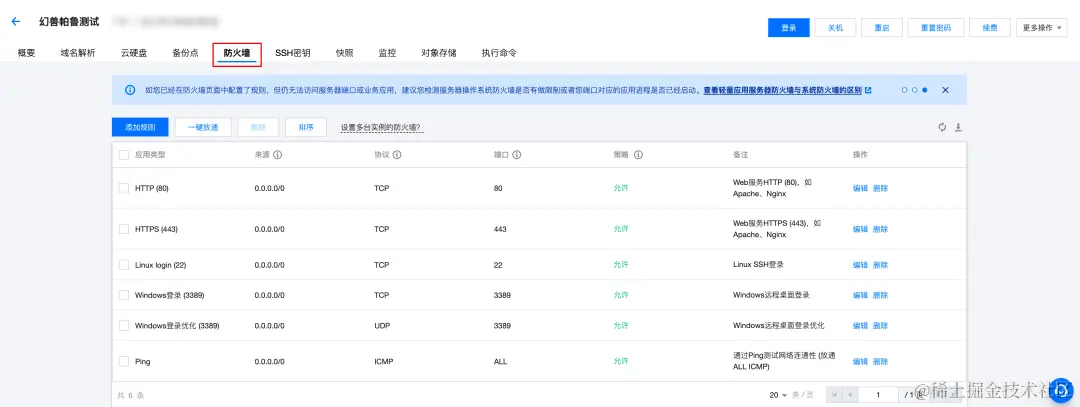 此处的防火墙特指腾讯云轻量应用服务器控制台的“防火墙”功能,无需开启操作系统内部的防火墙。