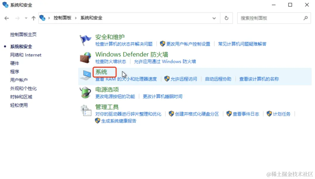 2、在控制面板中,选择"系统和安全",然后选择"系统"。