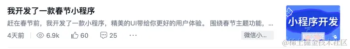 在前两天我发布了一篇文章:我开发了一款春节小程序 ,在掘金了收到了大量的流量关注。 如果你想看一下小程序效果,地址在这里: