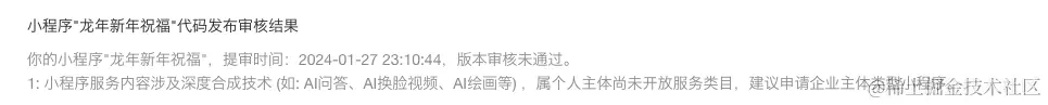 你可能会收到这种驳回申请,但是如果你的代码确定没有涉及,你就直接对结果提出抗议,说明你的代码中没有涉及AI功能。 一般再提交一次就能通过。
