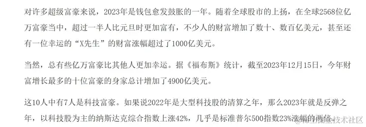 那么,能够在如此短的时间里增长如此多的财富,富豪们到底做了些什么呢?归根结底,富豪们增长财富的秘诀就是两个字母——AI,《福布斯》里也有所提及:10人中有7人是科技富豪。在过去的2023年中,大家都目睹了AI的兴起,自chatgpt爆火以后,各种AI产品就如雨后春笋般出现,并以一种极快的速度进入了我们生活的方方面面,而这背后,也就预示着科技公司的老板们,大赚了一波。例如英伟达的老板黄仁勋,依靠英伟达在AI行业的统治力,含泪怒赚了2000亿。