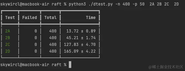 所有有共享变量使用的地方,看看要不要加锁,这里建议测试至少1000次以上,将所有的并发问题解决,后面的lab2C和lab2D出问题就大概率不会是代码的并发问题了,减少心智负担,提高时间效率,我自己是测试了1W次,无fall通过